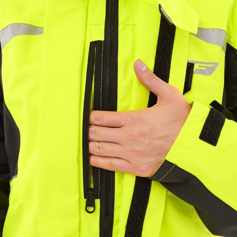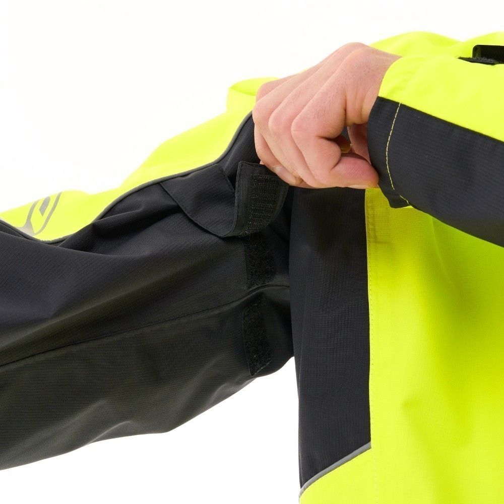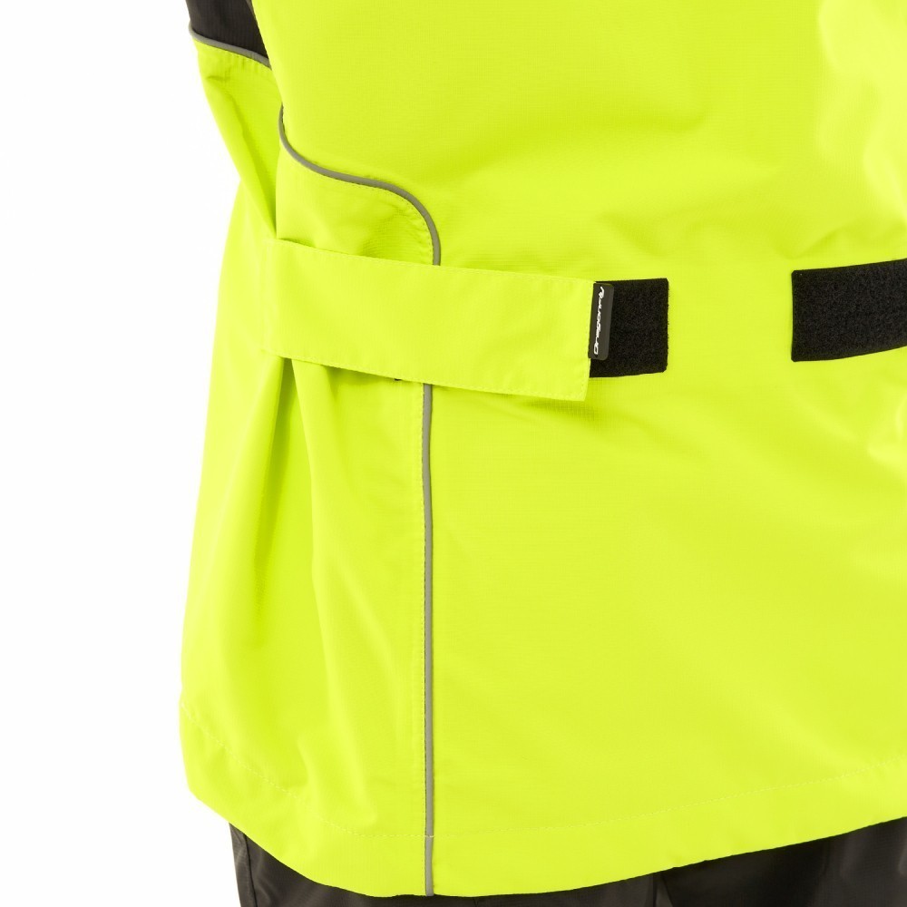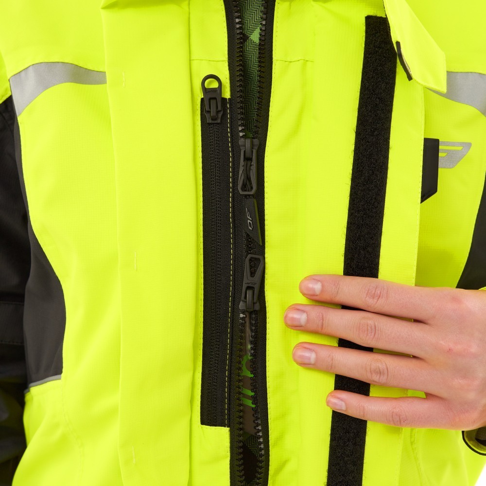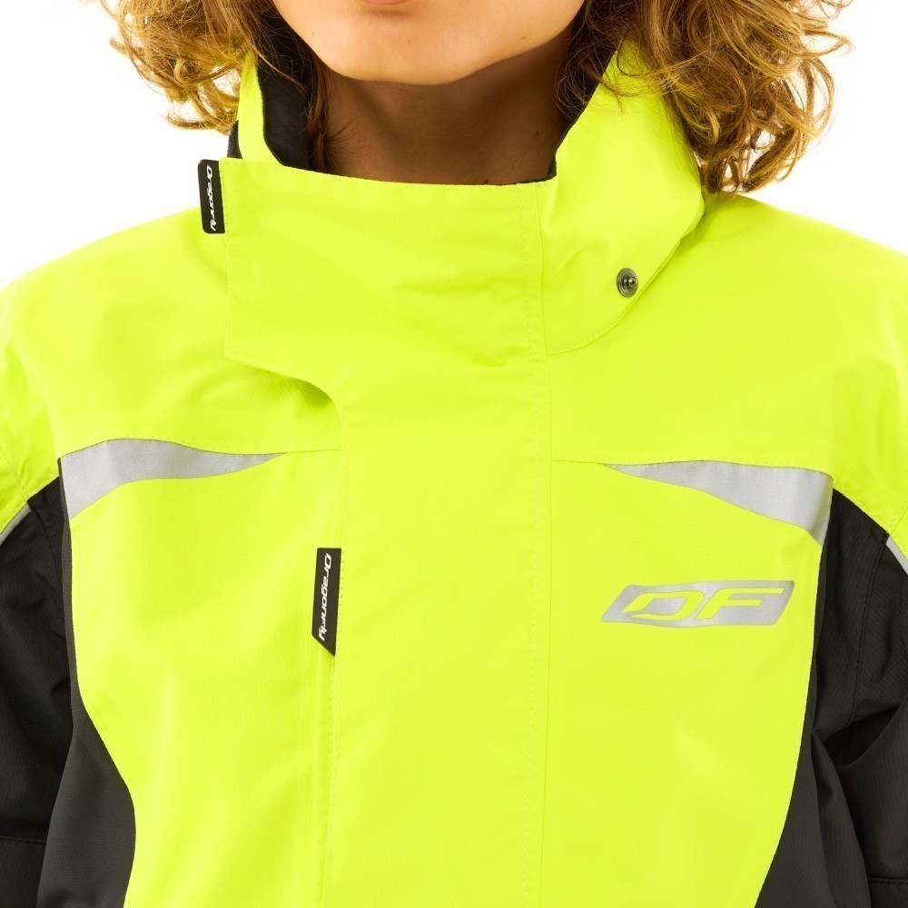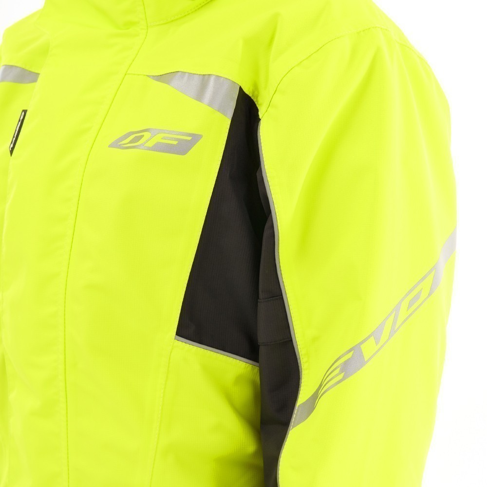 Непромокаемая куртка EVO быстро и с легкостью надевается на одежду или экипировку. Сшита из прочной водонепроницаемой и ветрозащитной мембранной ткани DFTEX (плотность 165 г/м², 100% полиэстер, показатели мембраны 20 000/ 20 000). Куртка не стесняет движений: эргономичный дизайн учитывает все особенности посадки и езды на большой скорости. Надежно защищает от ветра, пыли, дождя, грязи, обеспечивая комфорт в период непогоды. Все швы герметичные. Благодаря мембране материал отводит влагу от тела, не давая конденсату скапливаться на внутренней поверхности.