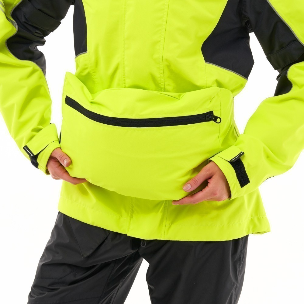 Рекомендуем приобрести желтый дождевик EVO для женщин в комплекте с мембранными штанами. К куртке прилагается транспортировочная сумка под дождевой комплект "куртка + штаны", которая крепится на пояс, в том числе и в поездке.